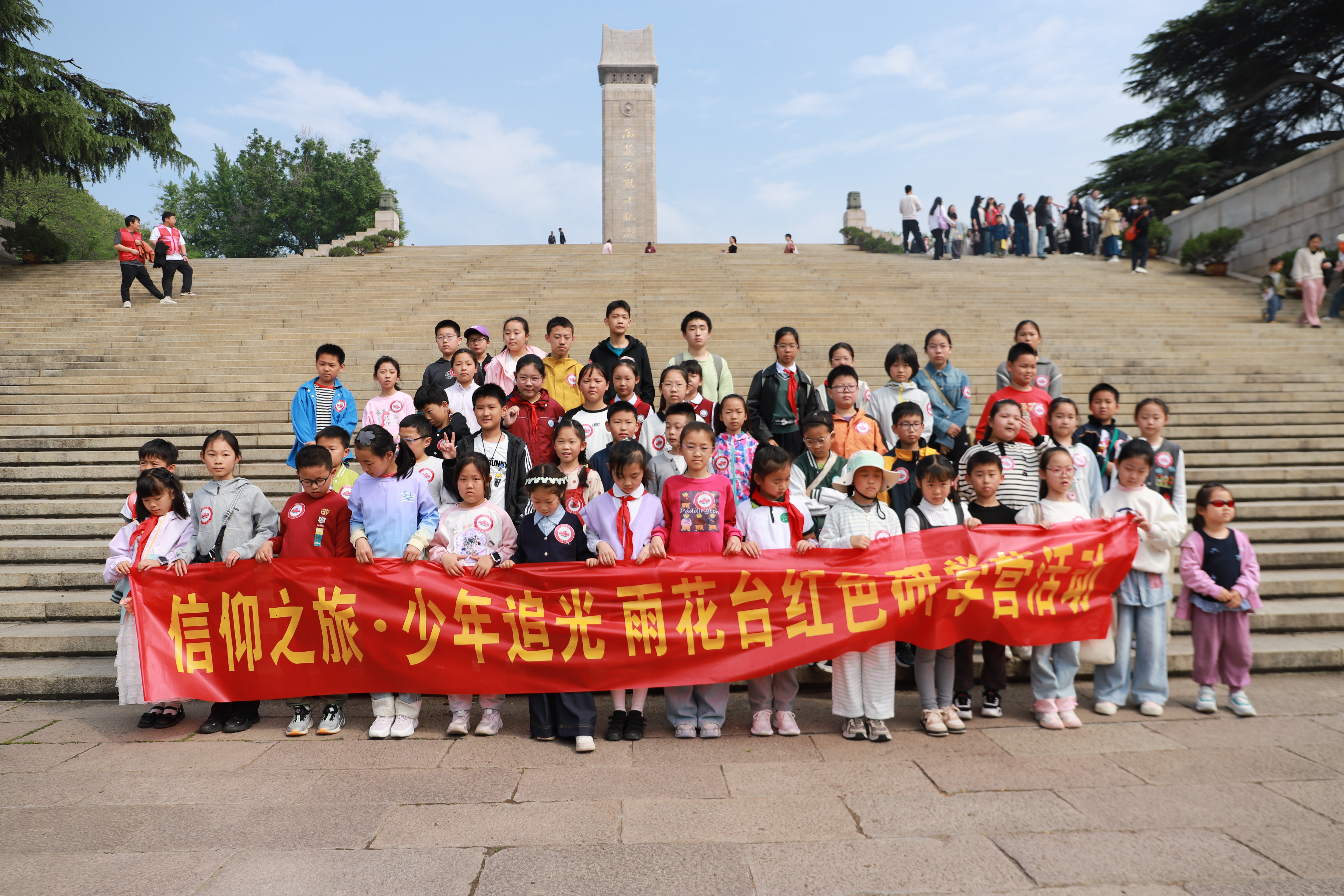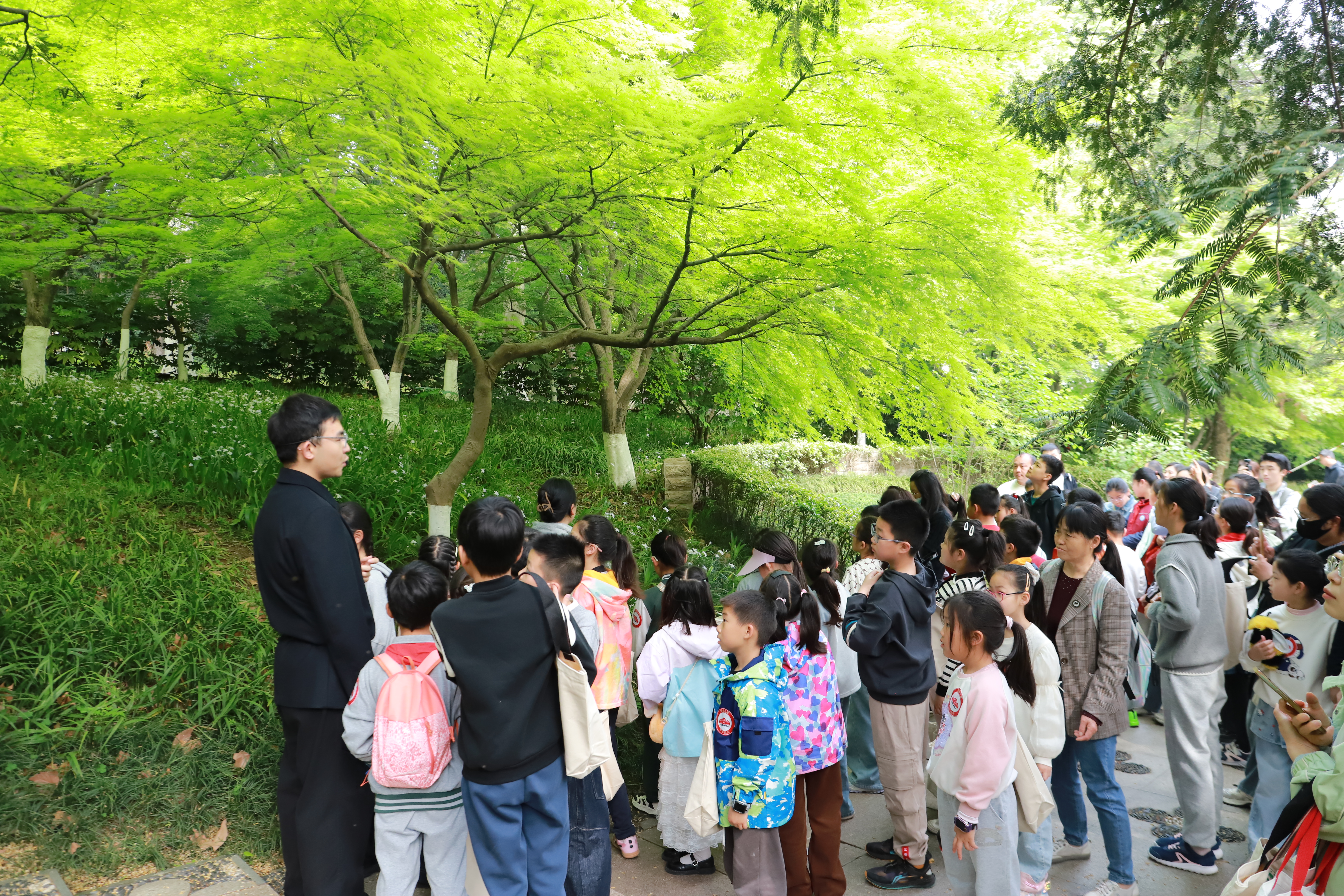 活动创新打造“红地生文”四元融合模式,这一模式的核心,在于打破长期以来红色教育与生态科普领域间无形的壁垒。它将红色基因的传承“红” 作为精神引领,地质知识的普及“地”作为实体载体,生态责任的践行“生”作为最终目标,同时巧妙地依托雨花台作为国家级红色教育基地所承载的历史文化场域“文”,将其编织成有机整体。活动采用“一个主会场 + 四个分会场”联动布局,以“红韵征程”8个打卡点串联全程,打造沉浸式、强互动体验。